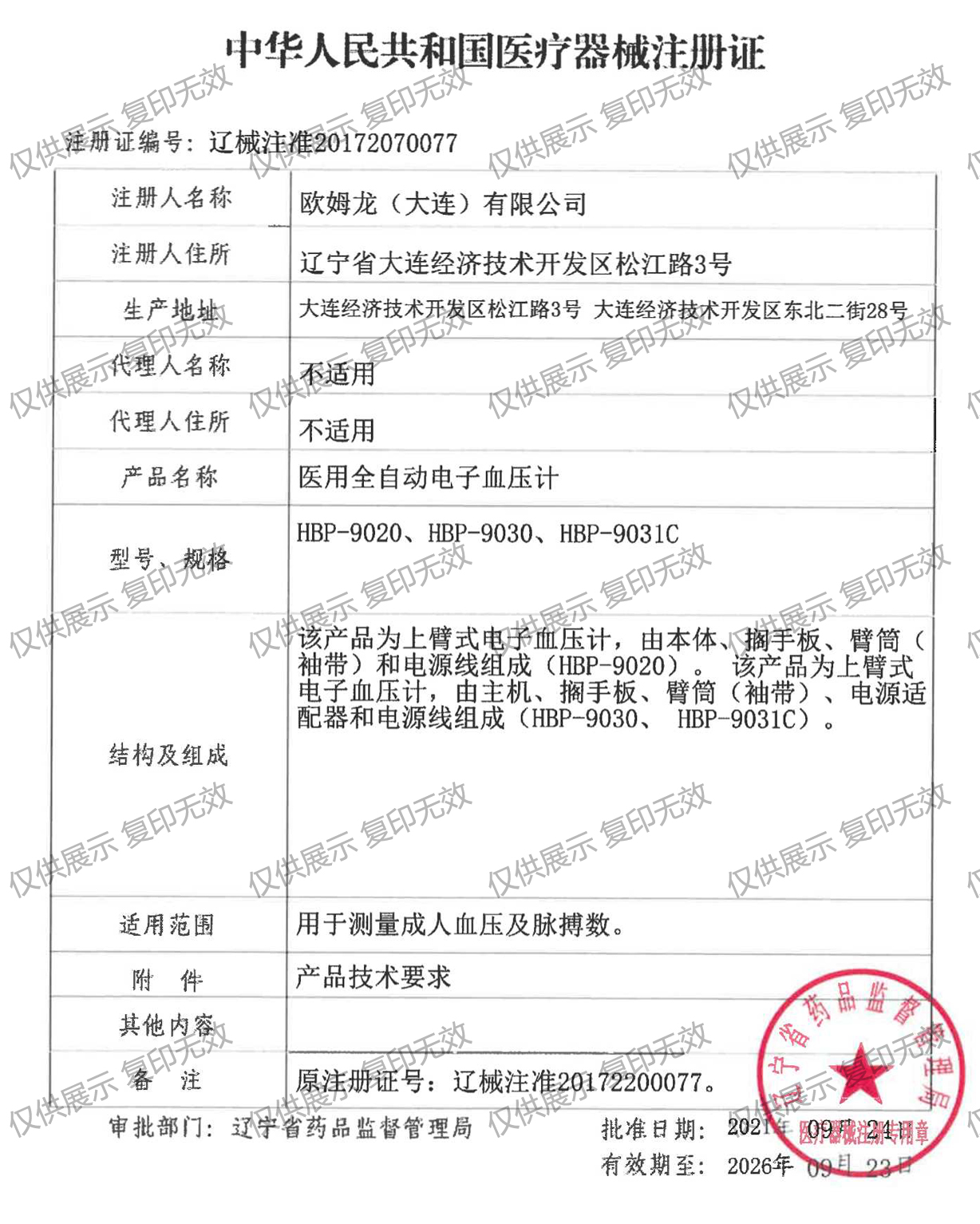 注冊證編號:遼械注準20172070077